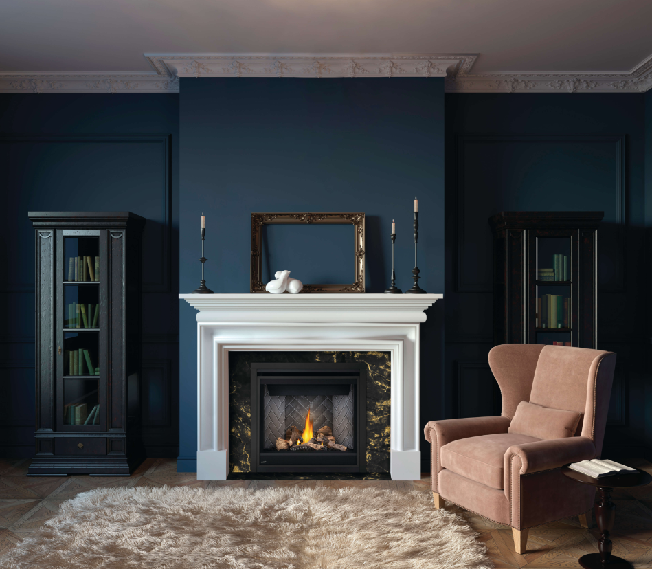 - Options : Système millivolt - Panneaux décoratifs pour l'intérieur du foyer - Moulures de finition - Ensemble de bûches décoratives -Ensemble de pierres décoratives